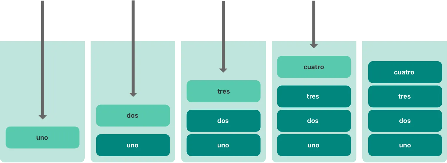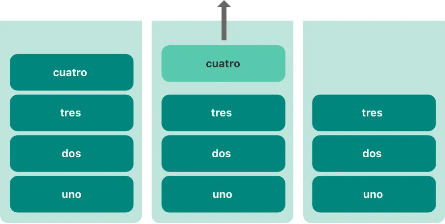 // fromTheTop is equal to "cuatro", and the stack now contains 3 strings