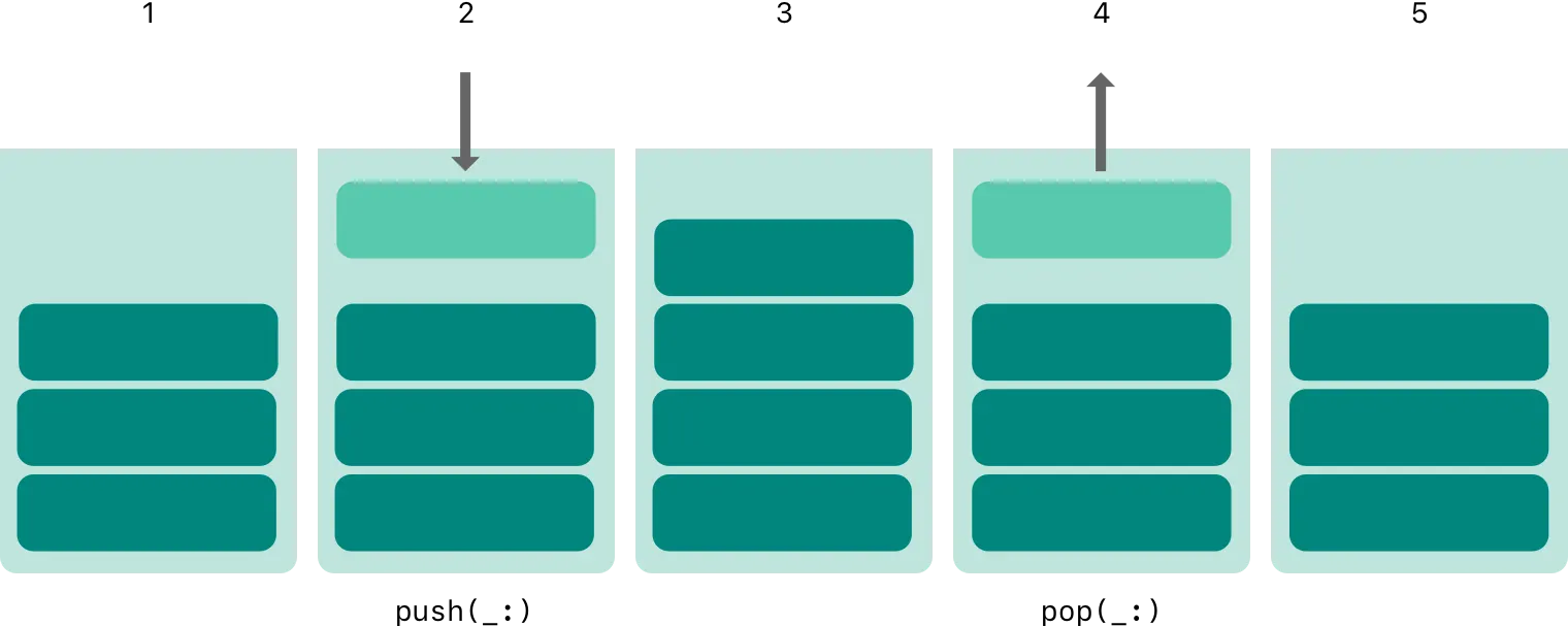 UINavigationController 클래스 도 또한 뷰 컨트롤러들을 stack 의 개념을 사용해서 저장합니다.