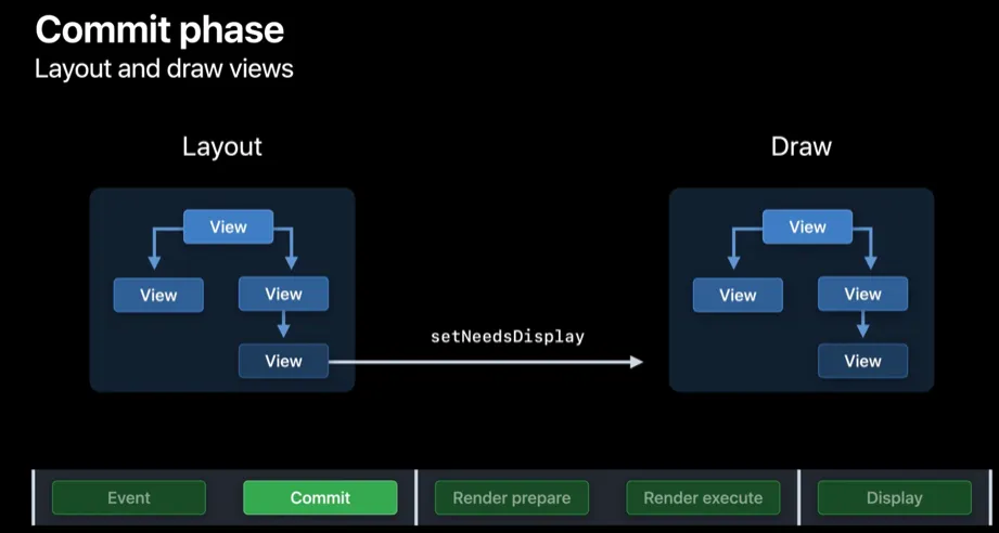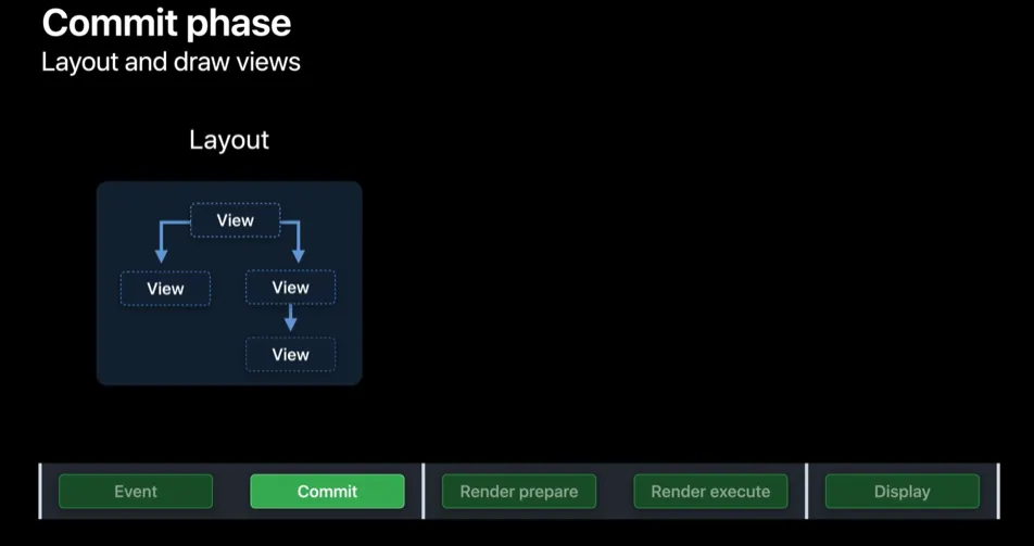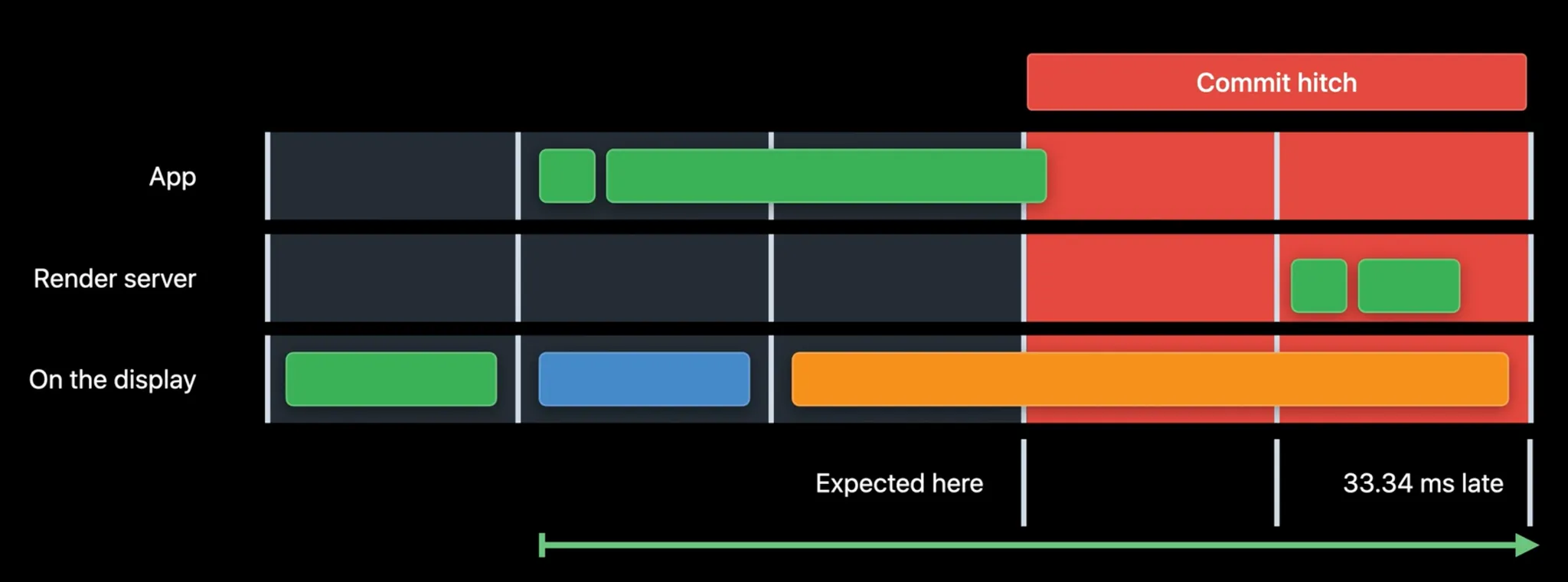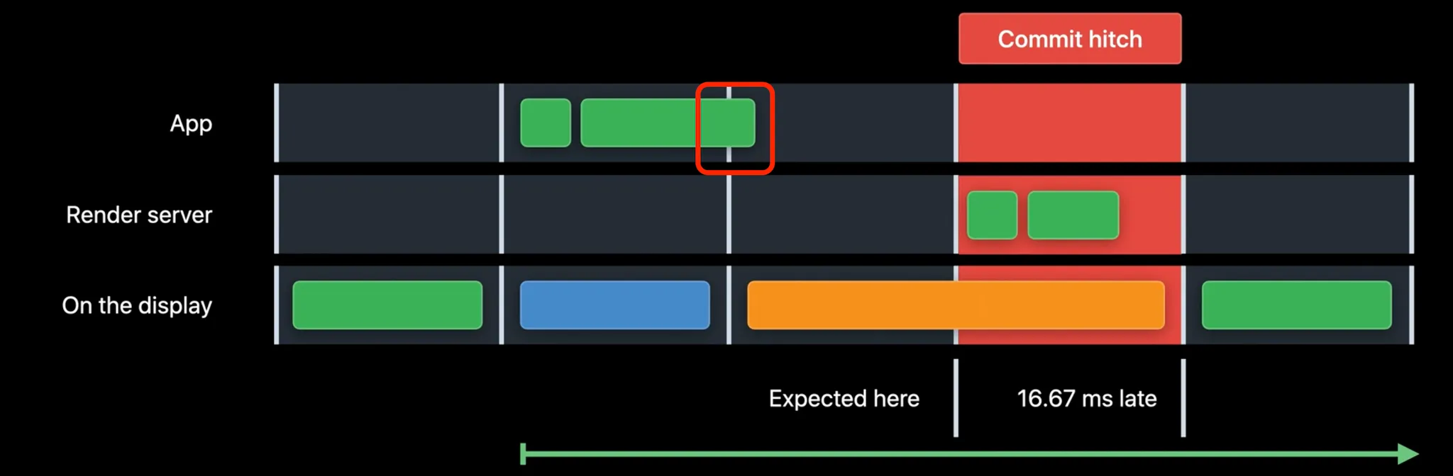 커밋 히치는 커밋 단계가 VSYNC 전에 마무리 되지 않았을 떄 발생하는 hitch 입니다.