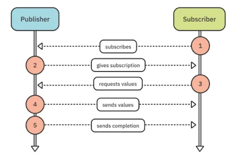Publisher - receive<S>(subscriber: S) → Subscriber - receive(subscription: Subscription) :