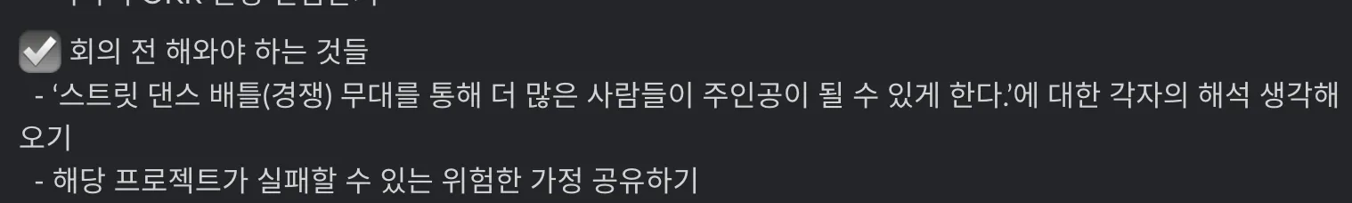 필수 - “아래 내용을 완료하는 것 까지가 미팅의 끝입니다.”