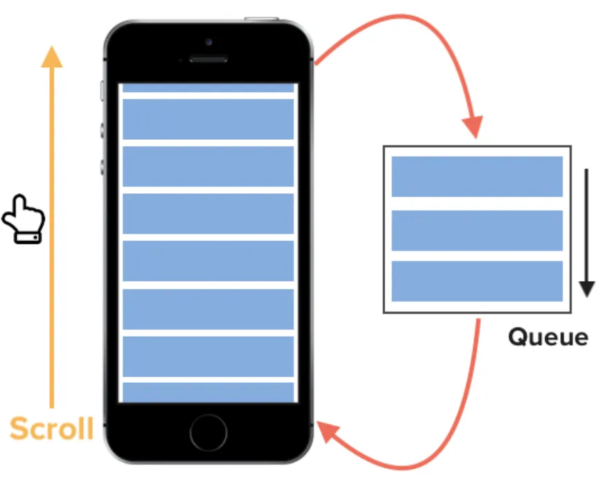 스크롤해서 우리눈에 보이지 않게 된 셀들은 아래로 가서 다시 우리눈에 보여질 준비를한답니다.