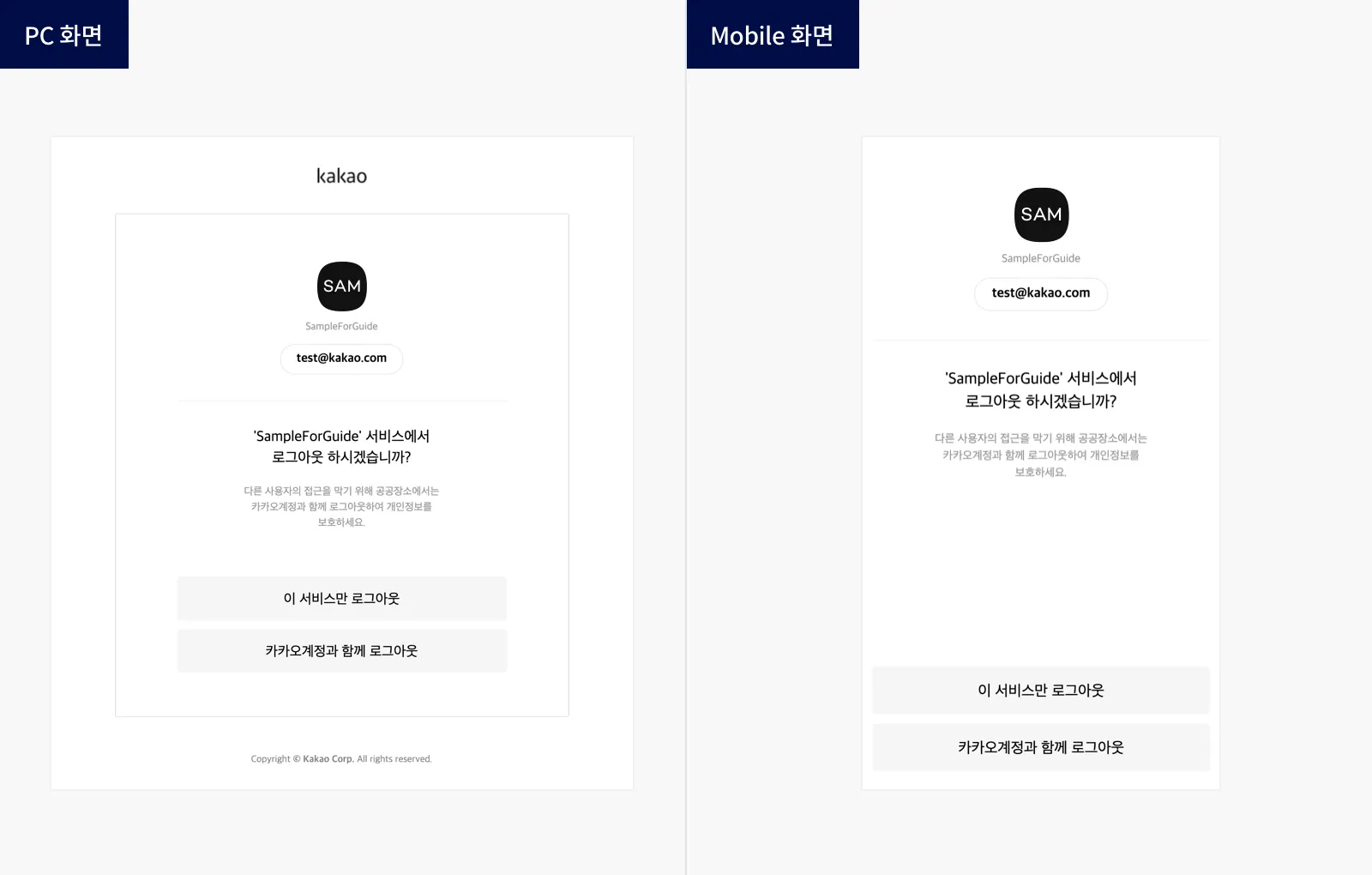 카카오계정의 로그아웃 처리는 다음과 같이 이뤄집니다: