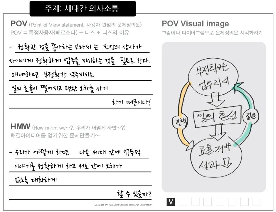 제품을 만들기 전에 해결하고자 하는 문제를 명확하게 설명하지 못한다면 그 누가 혁신적인 해결책을 내놓을 수 있을까요? 문제를 명확히 정의하는 방식 중 하나인 POV - HMW 구조를 설명해보려고 합니다.