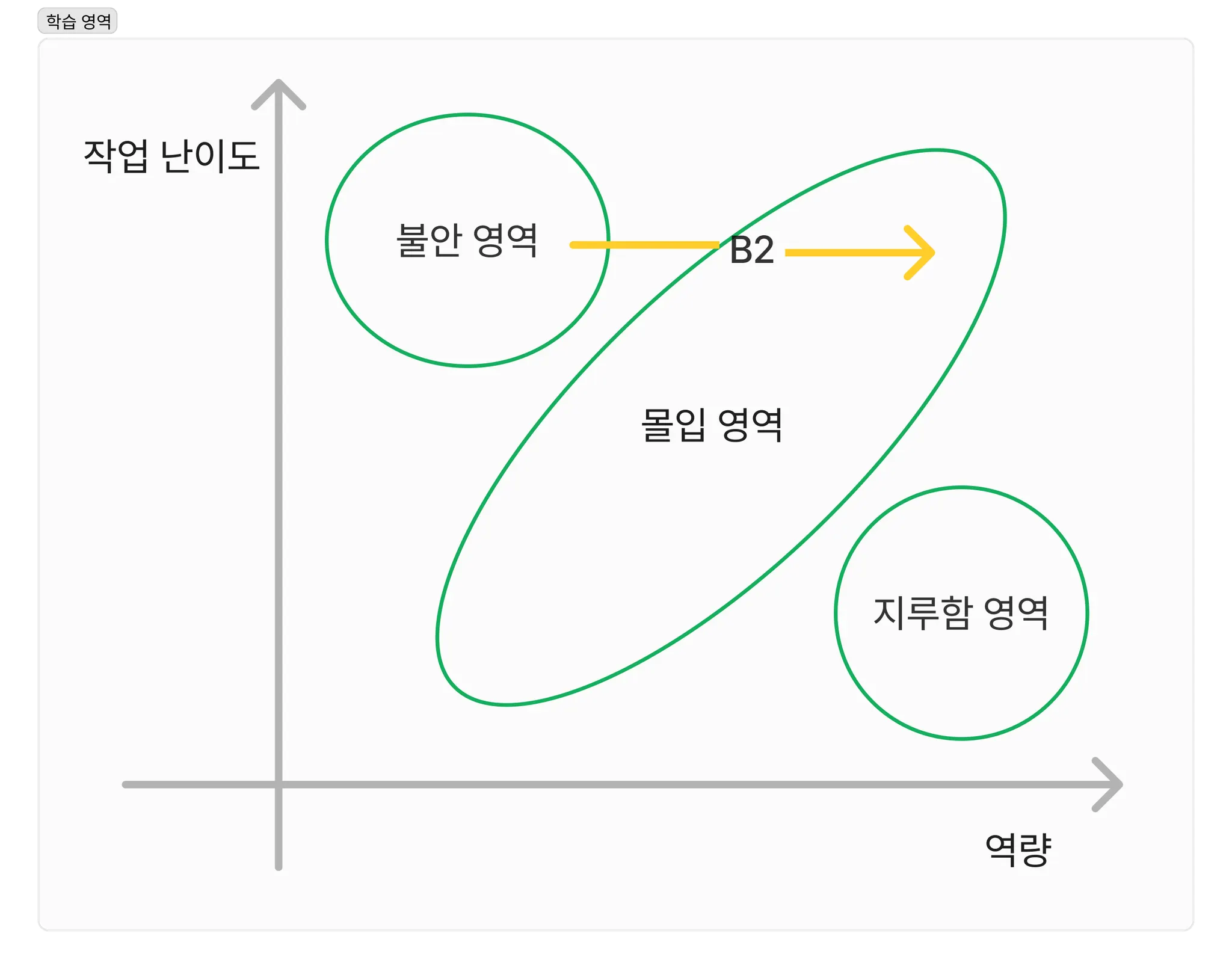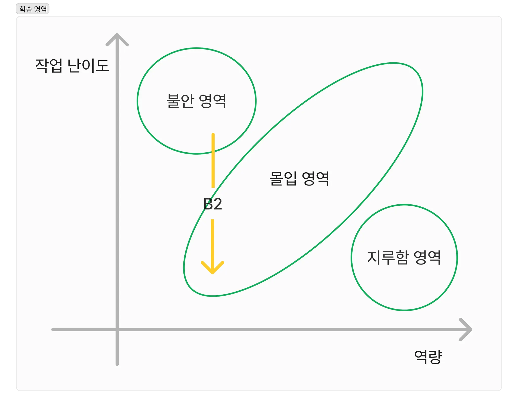 지루함 또는 불안함에 빠지지 않고 몰입할 수 있는 환경을 구성하는 것이 중요합니다.
