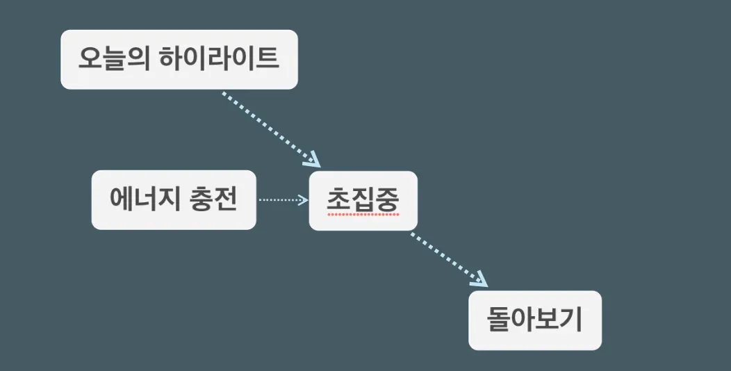 즐거움 : 오늘을 되돌아 봤을 때 가장 즐거움을 느낄 일은?