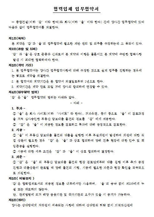 상대방과의 동상이몽을 막고 분쟁을 방지할 수 있는 방법은 업무협약서 를 명확하게 작성하는 것입니다.