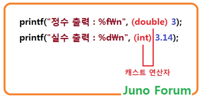 이처럼, 피연산자 앞의 괄호 안에 변경할 자료형을 입력하면 됩니다.
