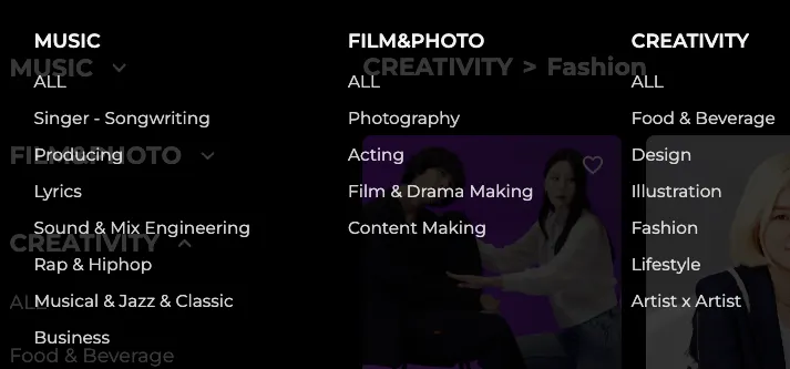 예술이 탄생하는 과정과 결과물을 누구나 쉽게 접할 수 있도록 아티스트 IP를 기반으로 콘텐츠, 커머스, 공연 등 다양한 서비스를 제공